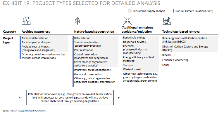 To put it briefly, projects that remove or reduce greenhouse gases ("GHGs") from the atmosphere to counteract emissions elsewhere are called carbon offset projects. It can range from micro-scale activities such as an installation of clean cookstoves or large-scale projects like solar farms. Generally, there are four types of carbon offset projects (see below excerpt from the report by TSVCM).